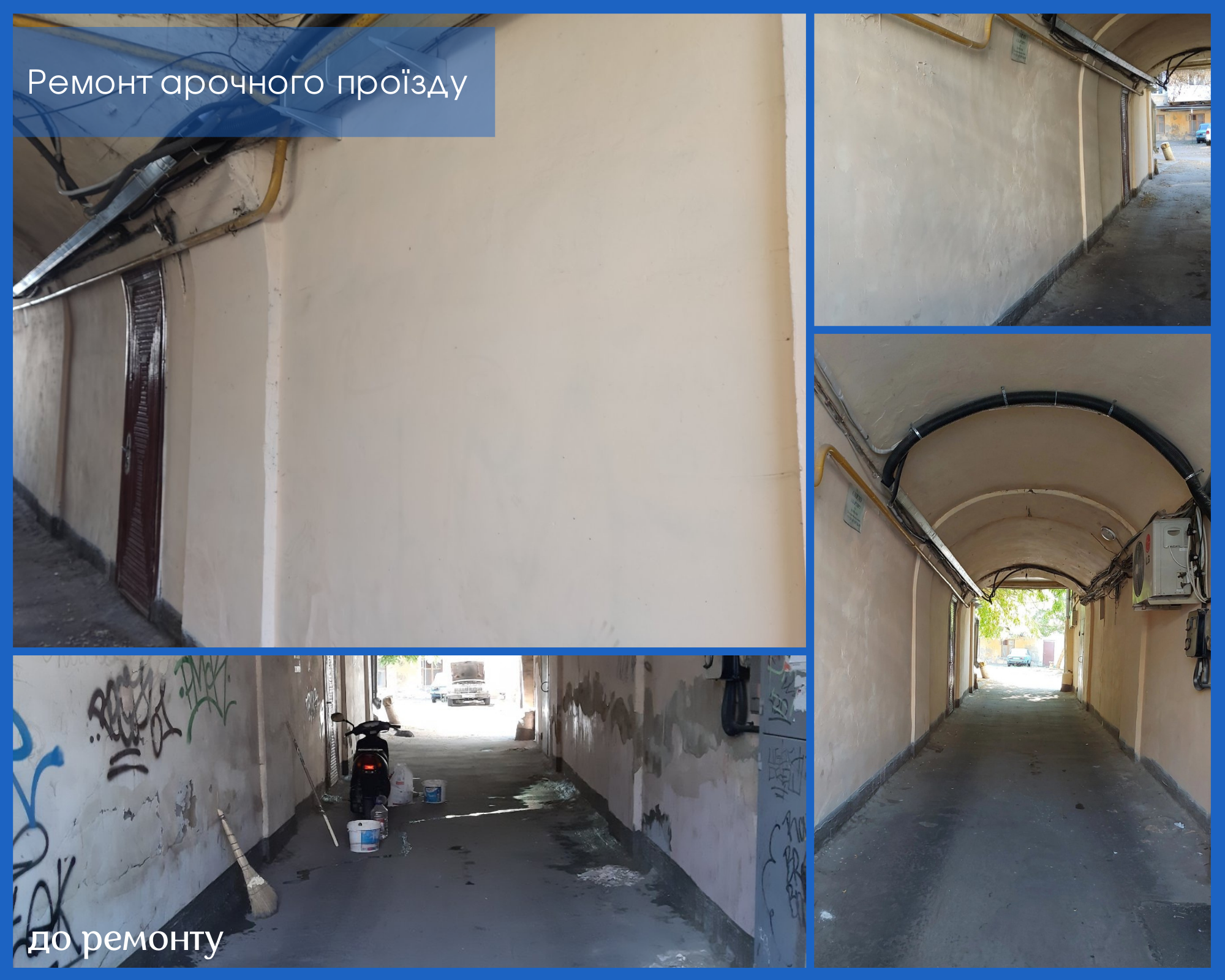 Цього разу нове життя отримав арочний проїзд на Грецькій, 33. Сподіваємося, що вандали більше не спотворять стіни і приємний вигляд проїзду буде радувати мешканців будинку.