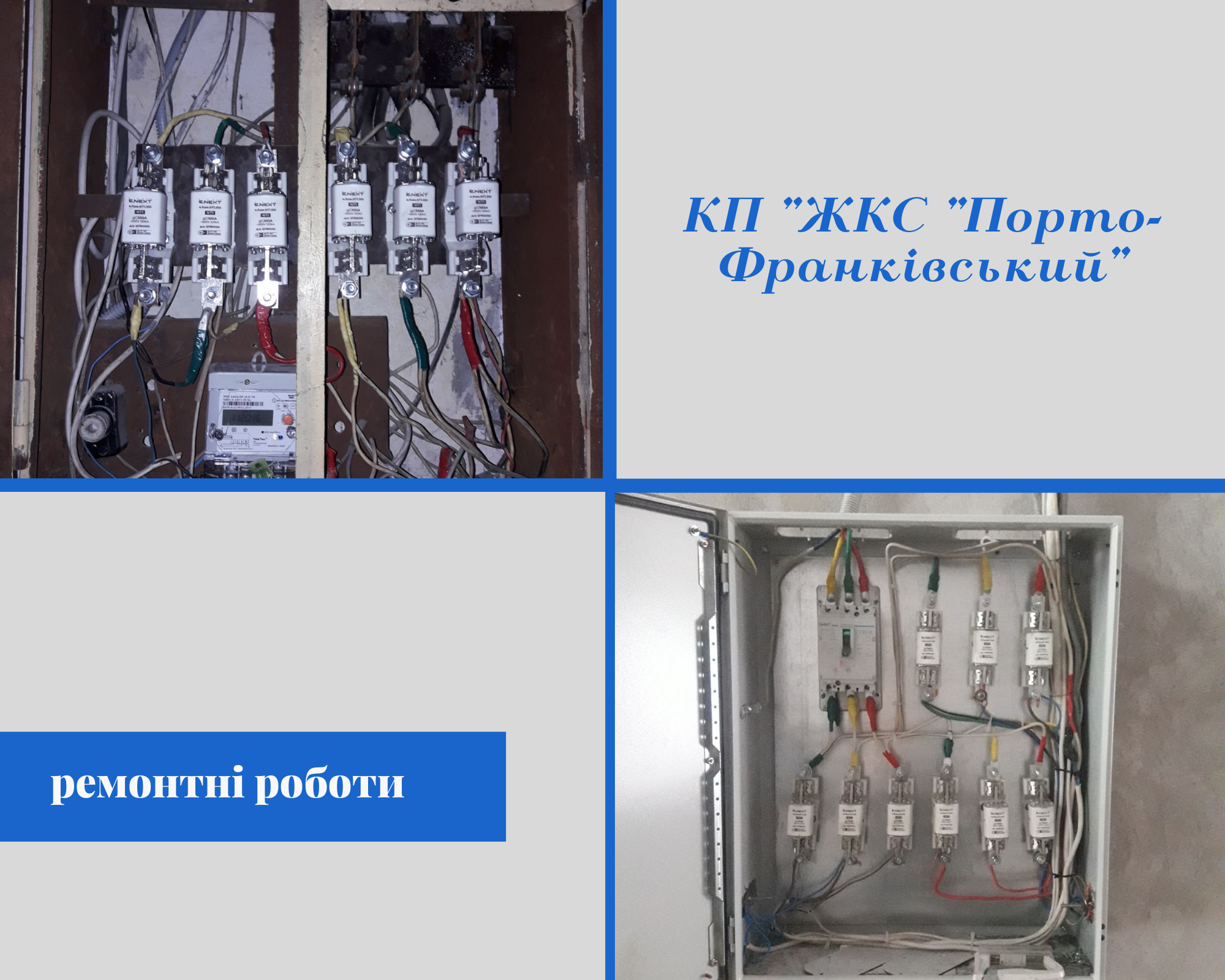 За адресами вулиця Грецька, 52 та пров. Віце – адмірала Жукова, 2 фахівці ЖКС “Порто-Франківський” виконали ремонт ввідно-розподільного пристрою в житлових будинках.