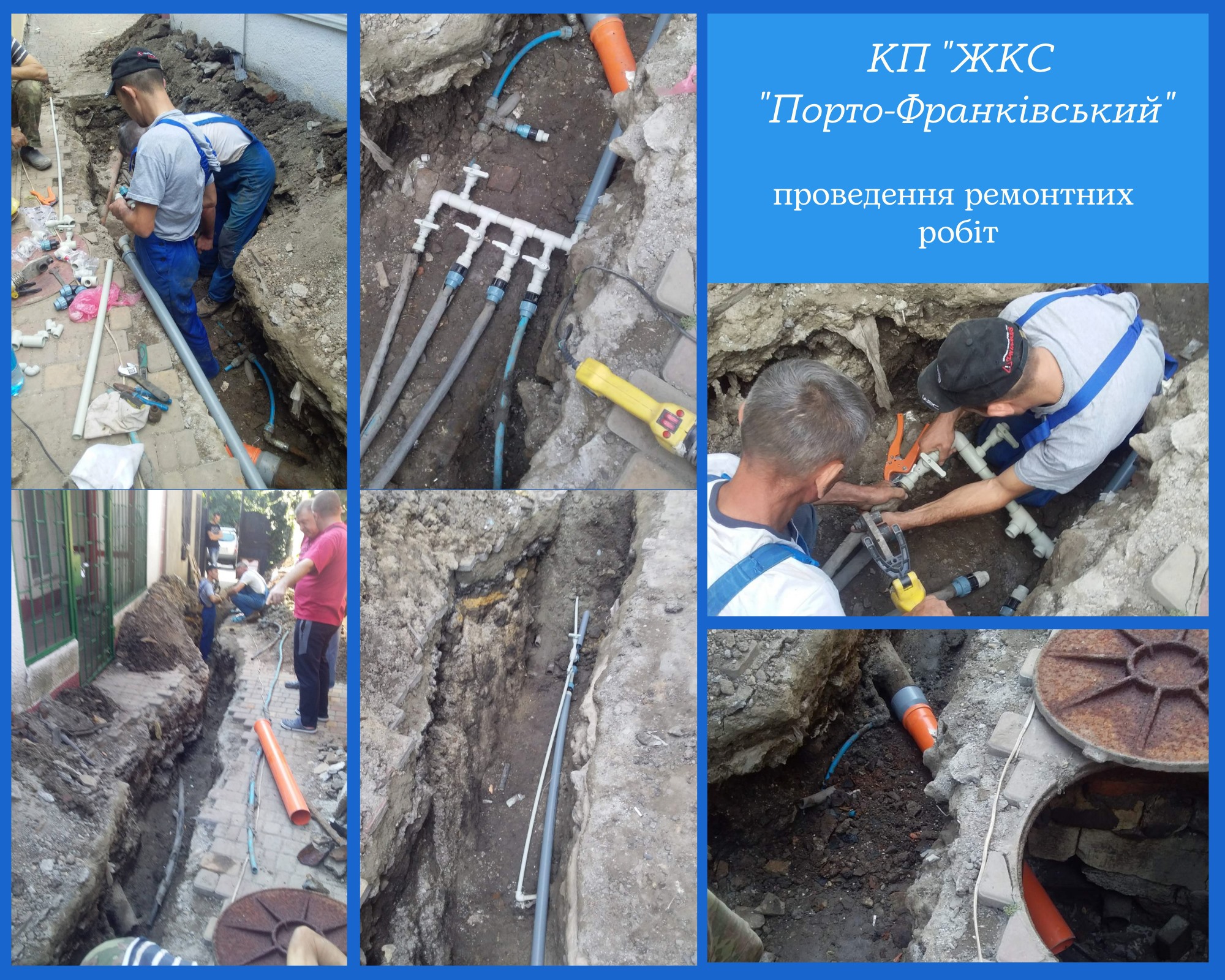 Ремонт комунікацій у житловому секторі - один з приоритетних напрямків виконання договорів на обслуговування будинків. Адже від стану систем комунікацій залежить комфорт мешканців. На фото: фахівці ЖКС "Порто-Франківський" виконали часткову заміну системи дворового водопостачання та водовідведення.