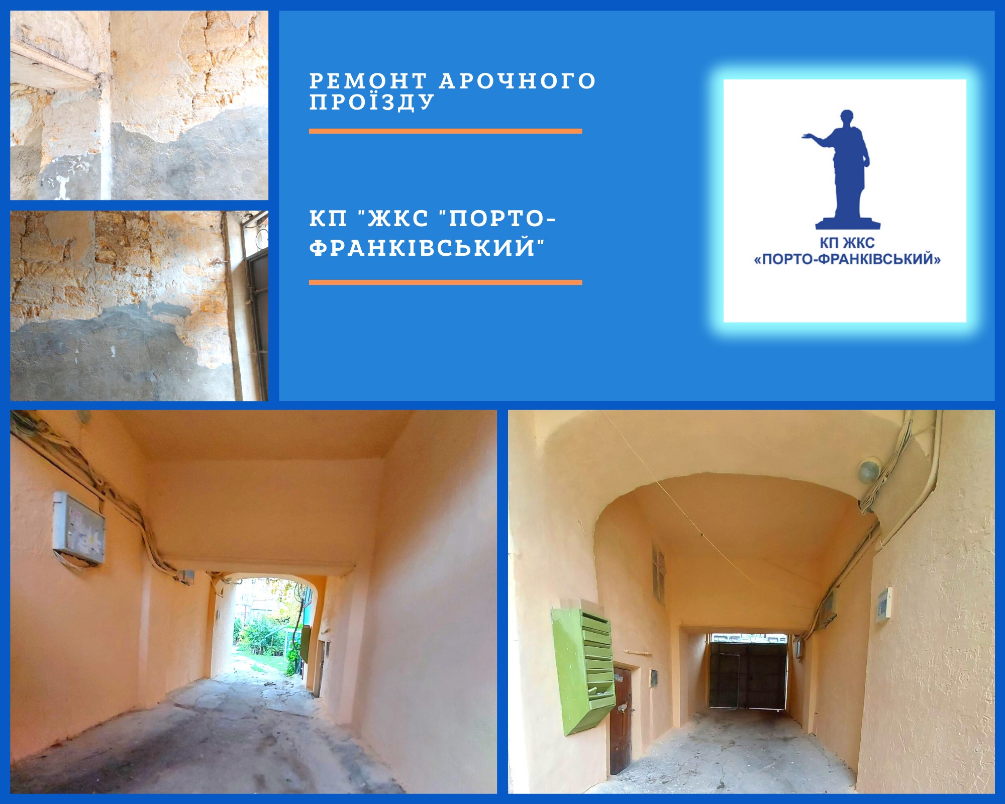 За адресою Матроський узвіз, 4 працівники ЖКС "Порто-Франківський" виконали ремонт арочного проїзду.